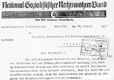 «Tudo isso se alcança com o mero retorno à poética do alemão arcaico, por sua antiguidade e por se afastar do quotidiano da língua. Às vezes basta anular uma silaba para que se altere o estado de espírito de uma pessoa, canalizando seus pensamentos para outro caminho ou mesmo substituindo-os por um estado de espírito crédulo, fácil de comandar. Irrompe a obrigação da fé. A sonoridade de Bund der Rechtswahrer [Ordem dos Guardiães da Justiça] é mais solene que a mera Vereinigung der Rechtsanwälte [Ordem dos Advogados], Amstwalter [intendente] impressiona mais que Funktionär [funcionário]. Quando leio Amstwaltung [intendência] na entrada de um escritório, em vez de Verwaltung [administração], tenho a impressão de algo sagrado. Em qualquer desses escritórios não sou apenas atendido, como o compromisso profissional requer, mas sou betreut [orientado]. Aquele que me orienta torna-se credor de um a dívida de gratidão. Tentarei jamais ofendê-lo; não farei qualquer tio de exigência, muito menos demonstrarei desconfiança.»